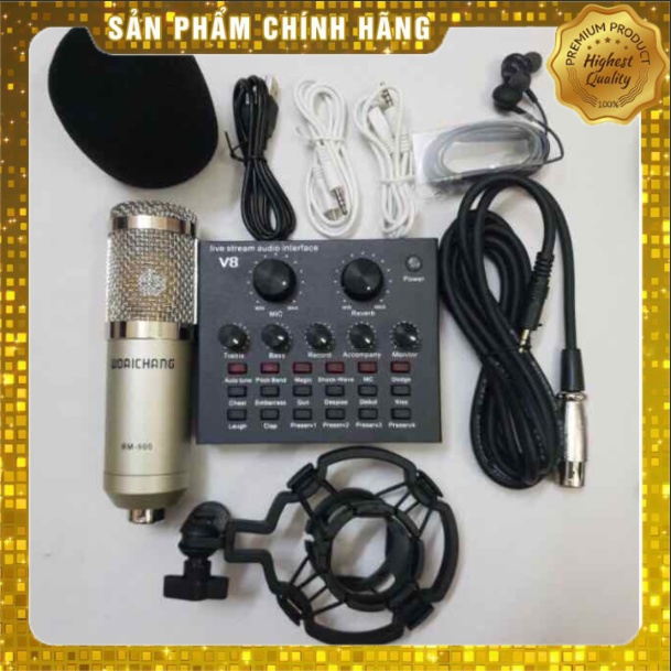 Giới thiệu [Mã ELHACE giảm 4% đơn 300K] CHỌN BỘ THU ÂM KARAOKE MIC BM 900-SOUND CARD V8 có BLUETOOTH tặng kèm tai nghe AKG