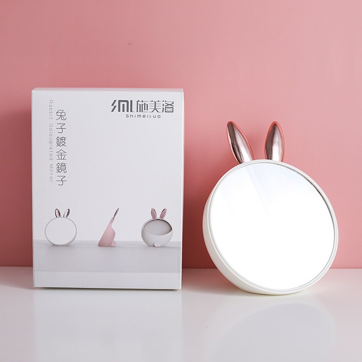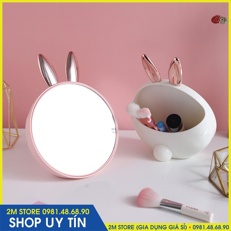 Nhà cửa & Đời sống > Trang trí nhà cửa > Gương || (CHỌN MÀU) Gương Trang Điểm Để Bàn Tai Thỏ Có Ngăn Để Dụng Cụ Trang Điểm Phía SauCòn hàng