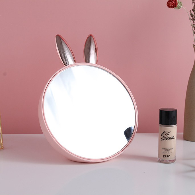Giới thiệu (CHỌN MÀU) Gương Trang Điểm Để Bàn Tai Thỏ Có Ngăn Để Dụng Cụ Trang Điểm Phía Sau