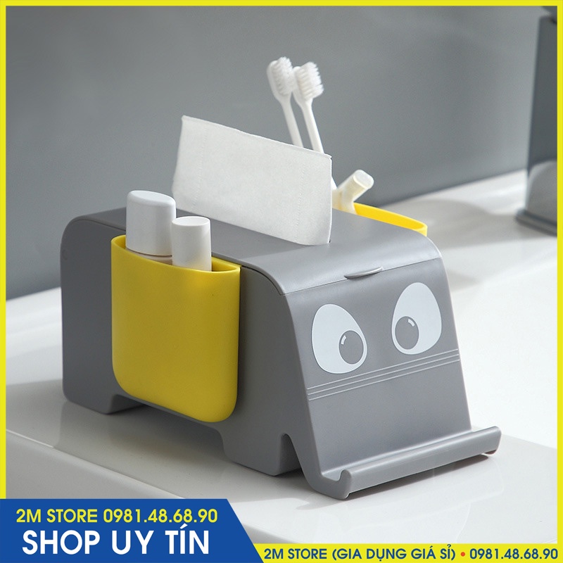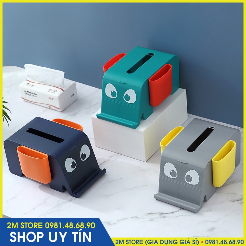 (CHỌN MÀU) Hộp Đựng Khăn Giấy Có 2 Ngăn Để Điện Thoại, Đồ Cá Nhân Kiêm Giá Để Điện Thoại Phía Trước Để Xem Phim