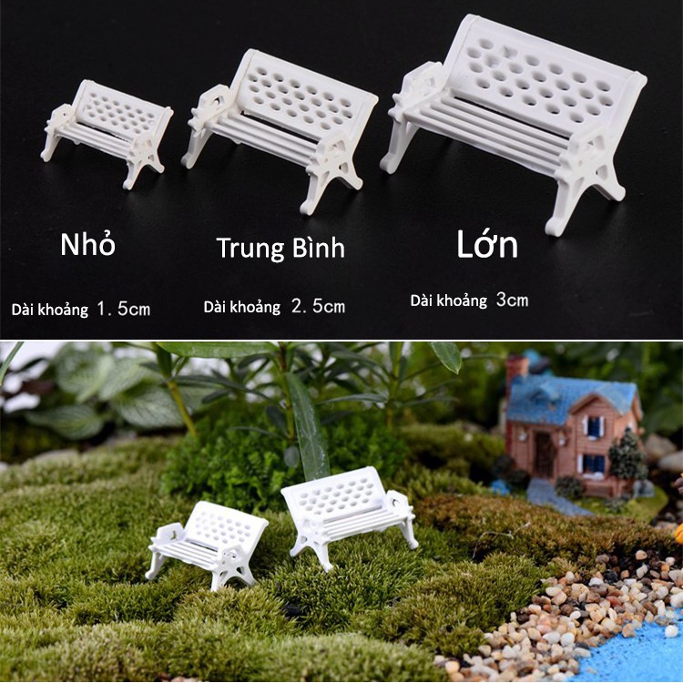 (CHỌN SIZE) Phụ Kiện Tiểu Cảnh Terrarium Ghế Trắng Công Viên Trang Trí Chậu Sen Đá, Xương Rồng, Bonsai, Bể Cá