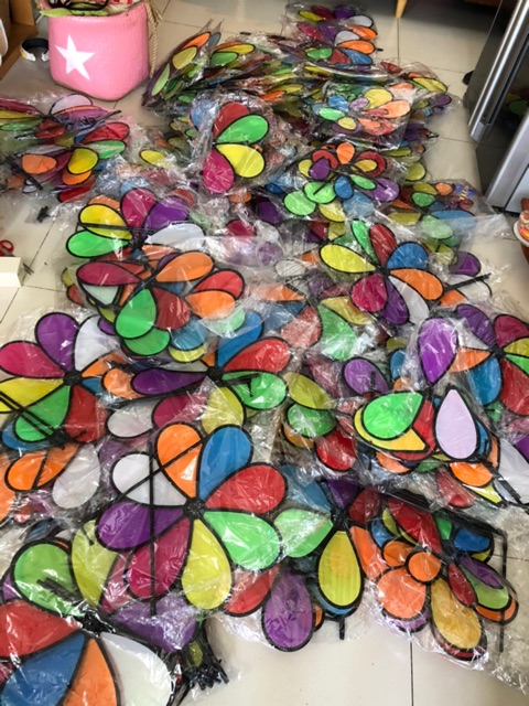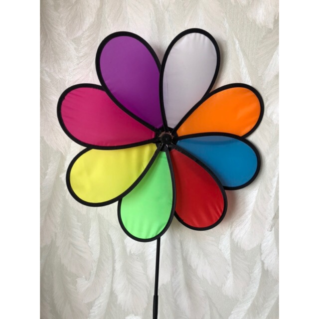 Chong chóng trang trí cỡ lớn đường kính 46cm cao 70cm, chất liệu vải dù bền theo thời gian.Chong chóng 8 cánh gồm 2 cây dài, 1 đoạn nối giữa 2 cây, 1 đoạn nối giữa cây cắm và chong chóng, đầu tròn cắm 8 cánh, 8 cánh chong chóng và 1 nắp đậy.