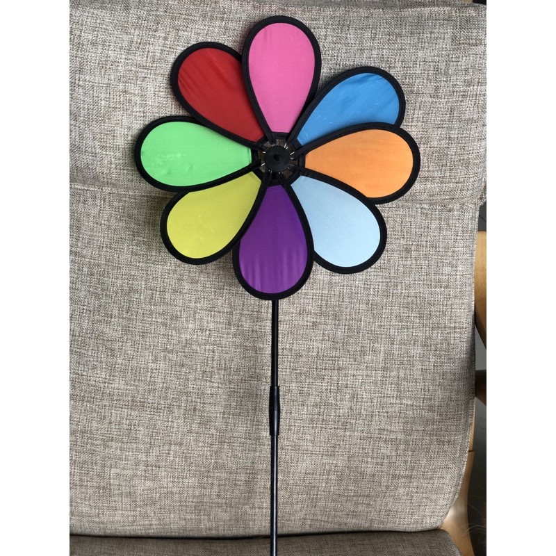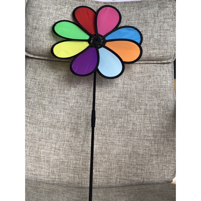 Chong chóng vải 8 cánh nhiều màu đẹp đường kính 30cm, gọng cầm màu đen.Dùng trang trí bên ngoài cửa tiệm tạo sự thu hút, trang trí sân vườn...