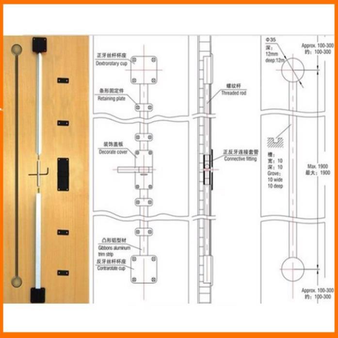 - Vật liệu: Thanh ren thép, đầu kéo hợp kim kẽm, nắp che, thanh che ren và bas bằng nhựa.