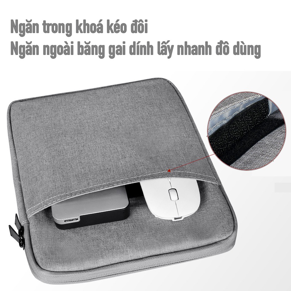 [Chống Sốc Dầy] Túi 2 ngăn vải chống thấm ướt cho iPad, máy tính bảng 8 inch, 9.7 inch, 10.2 inch, 10.5 inch, 11 inch