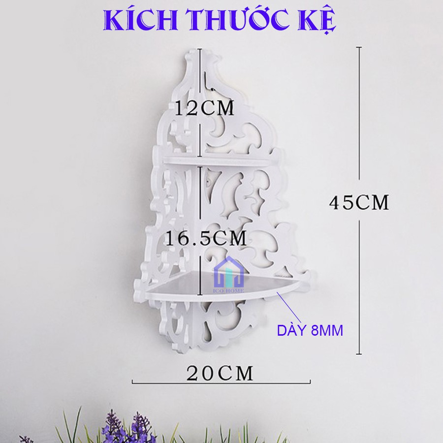 Kệ góc nhà tắm 2 tầng siêu đẹp, có tính kháng nước, dễ lau chùi, màu trắng sang trọng - Ico HomeKệ góc nhà tắm 2 tầng đang được nhiều nhà phố, nhà chung cư lựa chọn. Kệ được làm từ gỗ nhựa cao cấp, là sản phẩm có độ bền cao hơn rất nhiều so với các sản phẩm cùng loại đang được bày bán trên thị trường và thay thế hoàn toàn ván gỗ công nghiệp MDF, MFC… bởi tính năng chống nước, dễ lau chùi, chống mối mọt