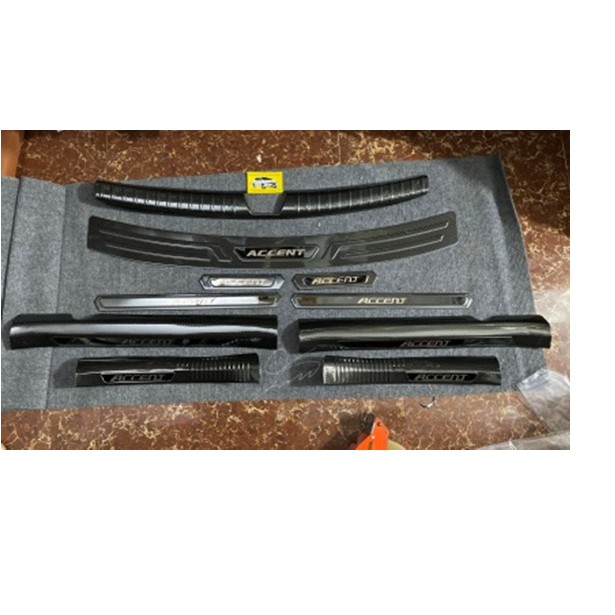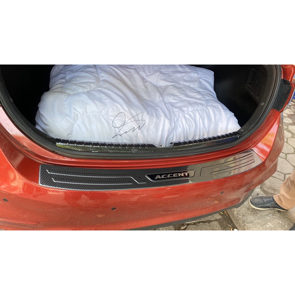 Bộ ốp chống trầy cốp trong, cốp ngoài vân CACBON xe HYUNDAI ACCENT Chất liệu Thép không rỉ mạ vân Cacbon.Băng keo trong dày bám tốt bề mặt nhựa sần, phun phủ chống rỉ và chống bong cả mặt sau