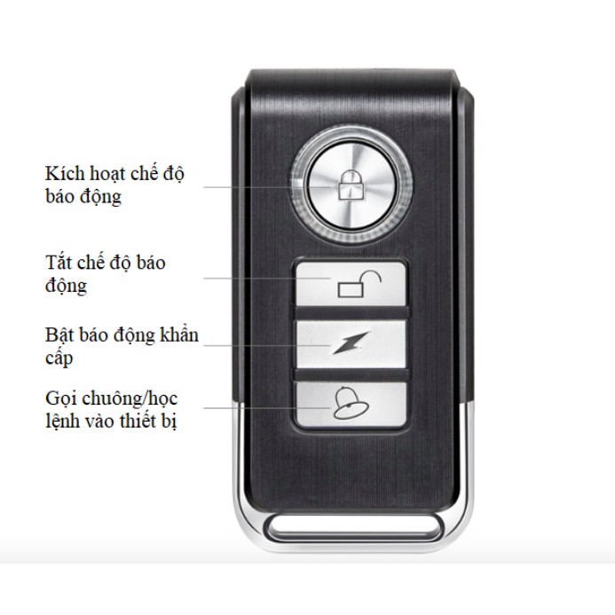 Thiết bị hỗ trợ remote để điều khiển bật/tắt chế độ báo động. Ngoài ra còn hỗ trợ chế độ báo động khẩn cấp và chế độ chuông. ANTI THEFT hoạt động liên tục trong 6 tháng, khi pin yếu thiết bị sẽ nhấp nháy đèn báo hiệu.