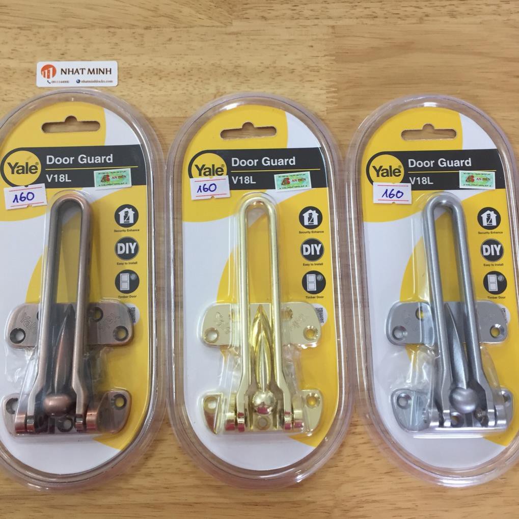 Chốt an toàn Yale chính hãng, chiều dài 127mm, chất liệu kẽm, có 3 màu : Đồng bóng (vàng), chrome, đồng đỏ.Lắp đặt dễ dàng, có thể tự lắp đặt tại nhà.