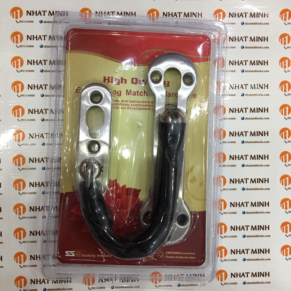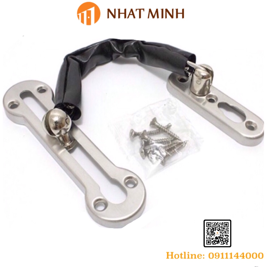 Chốt an toàn dạng chốt xích lắp cho cánh cửa.Chất liệu : Inox, dây xích bọc da