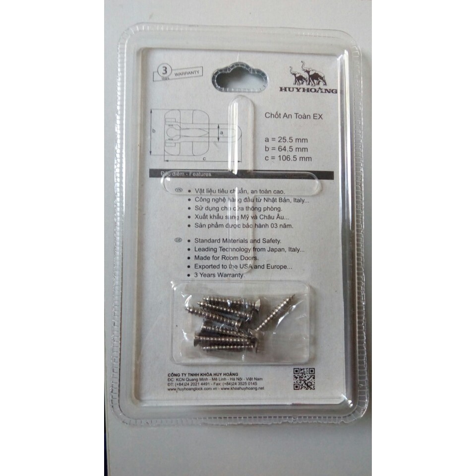 Tính năng của Chốt an toàn HUY HOÀNGLà sản phẩm thông dụng để mở hé quan sát bên ngoài khi có người lạ gõ cửa trước khi quyết định mở to cho ai đó vào hoặc mở hé cho thoáng phòng mà vẫn an toàn khi có trẻ nhỏ.