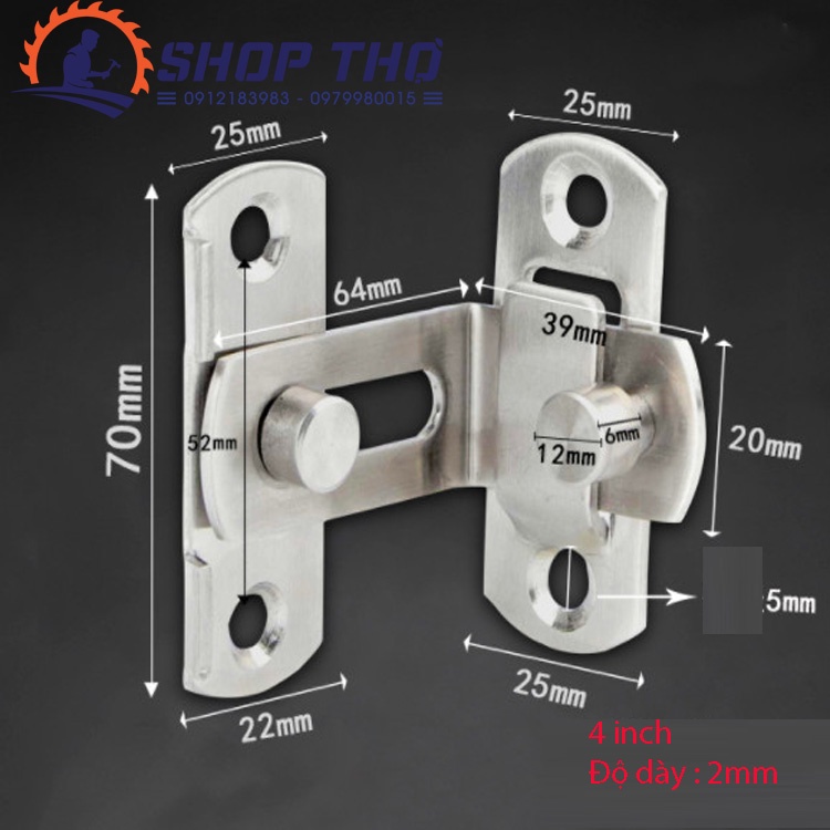 Giới thiệu Chốt an toàn khóa góc phải inox 304 kích thước 3, 4inch