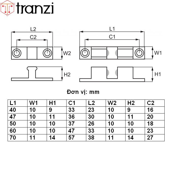 - Khoảng cách tâm hai lỗ vít ốc chốt (mm): 20