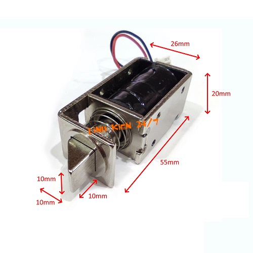 Khi cấp dòng điện 12VDC, chốt cửa sẽ rút lại và mở cửa ra. Khi ngưng cấp dòng, chốt sẽ về vị trí cũ và khóa cửa.