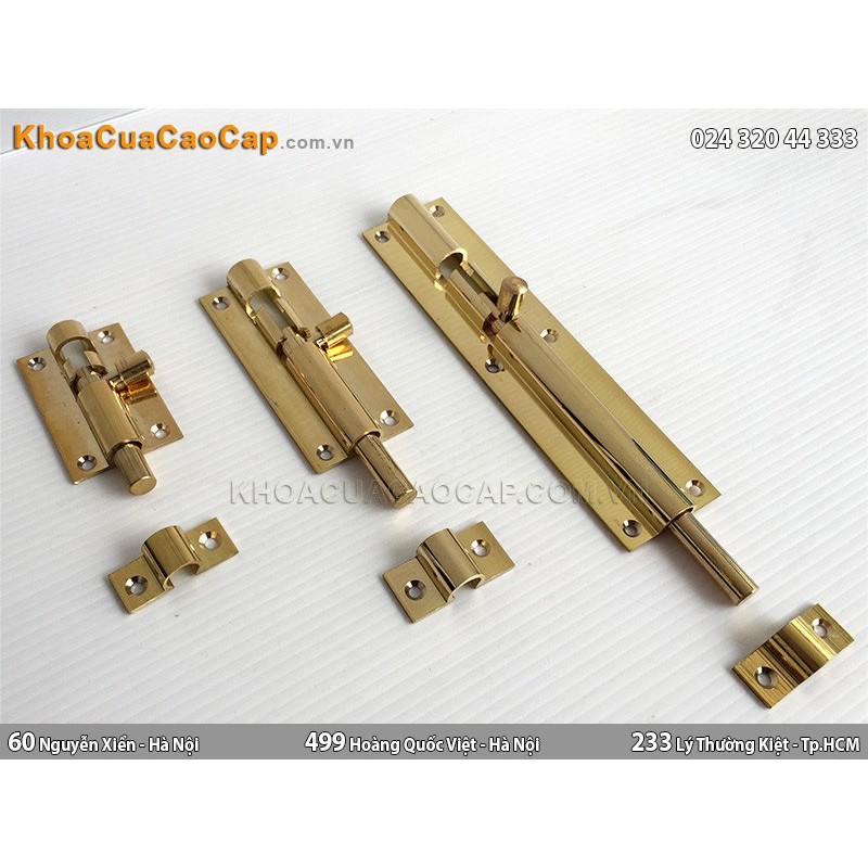 Chốt cửa bằng đồng thau rất dầy dặn, chắc chắn, có nhiều độ dài khác nhau, dùng cho cửa gỗ, cửa đi, cửa sổ, cửa ô gió. Sản phẩm chất lượng cao, giá ưu đãi.
