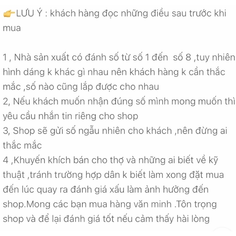 3, Shop sẽ gửi số ngẫu nhiên cho khách ,nên đừng ai thắc mắc