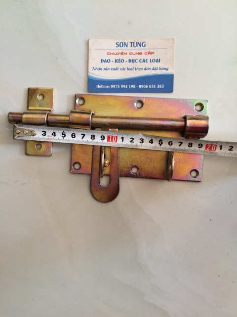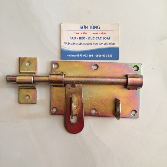 Sản phẩm là 1 cái chốt cửa ngang vuông to đạiLàm bằng sắt mạ vàng