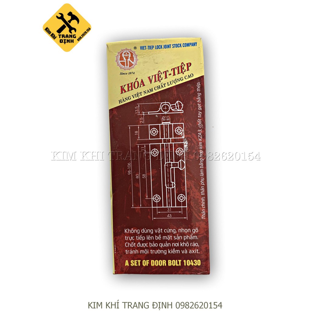 Chốt cửa Việt Tiệp 10430Ngang:43cm