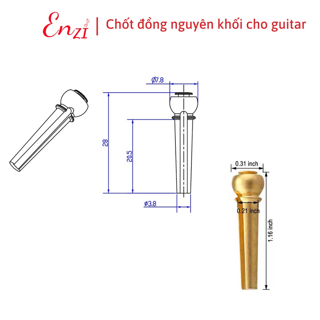 Chốt dây đàn guitar đồng thau nguyên khối đính ngọc cao cấp EnziThông tin sản phẩm: