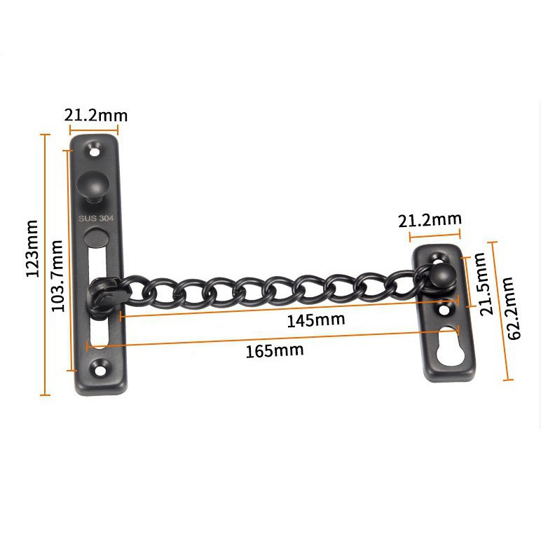 - Dây xích inox rất chắc chắn, Sử dụng 4 vít thẳng vào cửa và khung cửa.