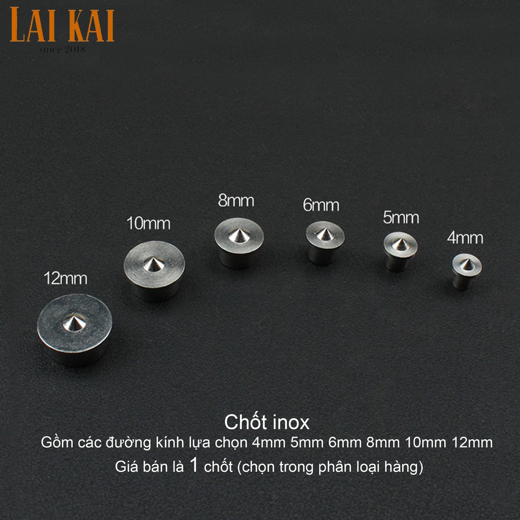 Chốt dùng định vị tâm lỗ khoan.Gồm các đường kính lựa chọn 4mm, 5mm, 6mm, 8mm, 10mm, 12mm