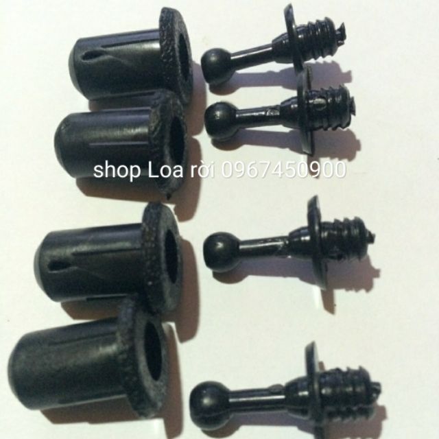 Chốt ê căng - chân ê căng cho thùng loa,,sản phẩm sử dụng trong sản xuất làm ê căng gắn thùng loa, chất liệu nhựa, chốt ê căngGiá trên của sản phẩm gồm 1 bộ chân 8 chi tiết 4 cối + 4 chày