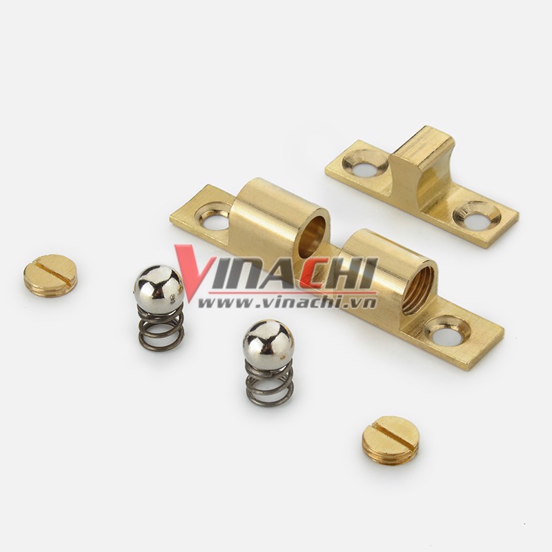 Chốt Giữ Cánh Tủ❎ Sản phẩm làm từ vật liệu đồng thau, kết hợp hai chốt bi có ấn lò xo kẹp giữ cánh cửa. Cố định cánh cửa, sang trọng, thẩm mỹ trên từng sản phẩm.