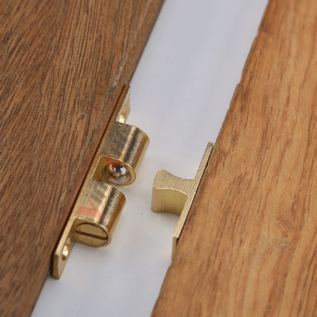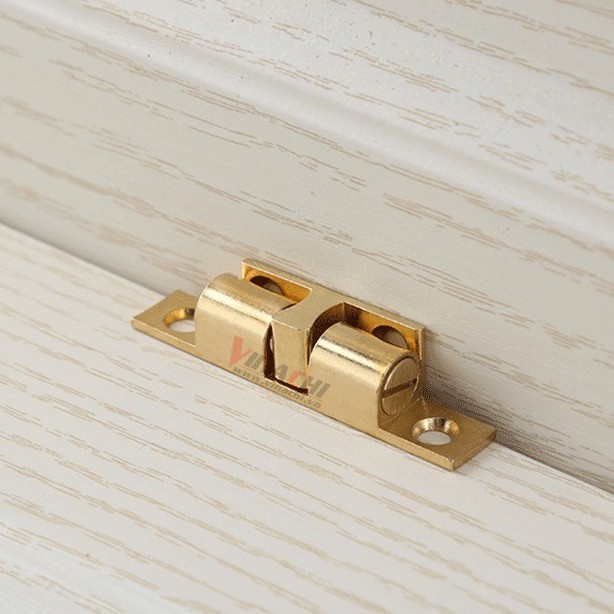 Chốt giữ cánh tủ làm từ vật liệu đồng thau, kết hợp hai chốt bi có ấn lò xo kẹp giữ cánh cửa, cố định cánh cửa không chỉ mang lại sự an toàn mà còn mang lại sự sang trọng, thẩm mỹ trên từng sản phẩm.