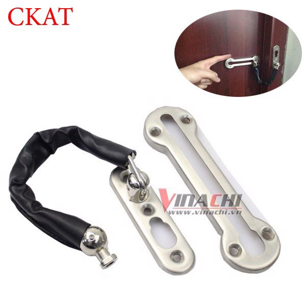 CHỐT KHÓA AN TOÀN DẠNG DÂY XÍCH- Sản phẩm thiết kế nhỏ gọn, chắc chắn, an toàn, được làm bằng thép inox không gỉ. Chốt cửa an toàn được thiết kế dạng xích bọc da PU, chỉ cần gạt đầu chốt sang 01 bên là có thể chọn chế độ mở cửa hay hé cửa, rất tiện dụng. Chốt cửa an toàn chống trộm là một phụ kiện rất hữu ích, bảo vệ an toàn tuyệt đối cao cho ngôi nhà của bạn.