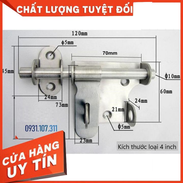 Nhà cửa & Đời sống > Bảo hộ gia đình > Khóa, ổ khóa || Chốt khóa cửa, then khóa cửa bằng vật liệu thép không gỉ K04 loại 4 inch, 6 inchCòn hàng