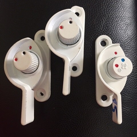 Chốt khóa sò xanh đỏ dùng cho cửa nhômKhóa sò ( khóa bán nguyệt ) dùng cho cửa mở trượt , mở lùa