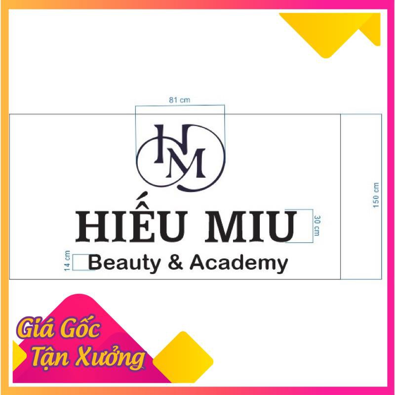 chất liệu Alu gương vànglogo cao 81cm, chữ hiếu miu cao 30cm, chữ beauty & academy cao 14cm