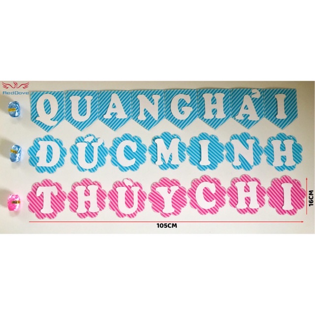 5k/1 chữ vậy khách cần cần trang trí tên báo shop sẽ gửi cho đầy nhé.