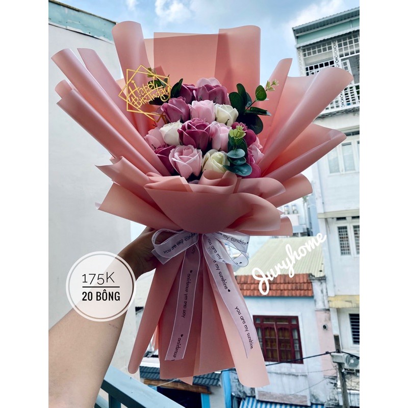 Nhà cửa & Đời sống > Trang trí nhà cửa > Hoa trang trí || Chữ Happy birthday gắn lên bó hoa sáp.Còn hàng