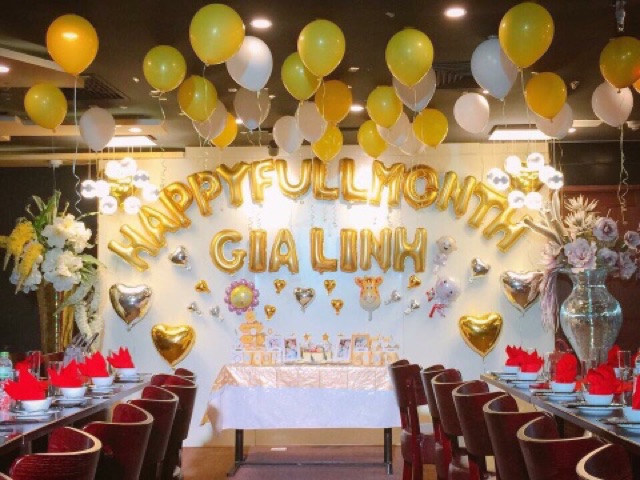 •Bộ chữ gồm 14 chữ cái: HAPPY FULL MONTH (tặng kèm 1 băng keo chuyên dụng dính bóng)