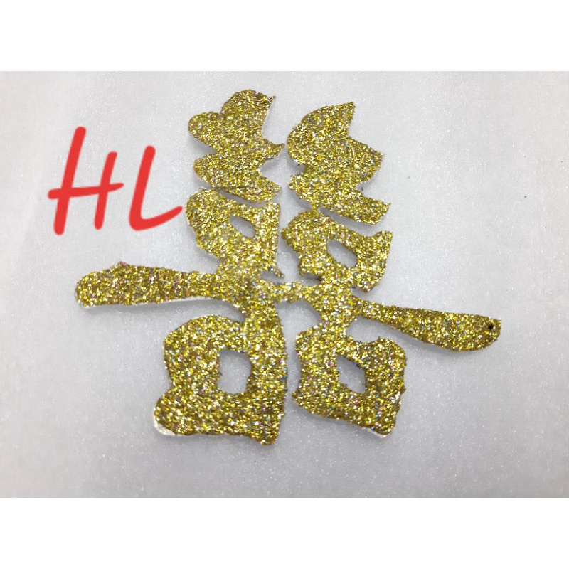 chữ Hỷ dùng trang trí tiệc cưới, phòng tân hôn...dày 5 ly chắc chắn, được phủ kim tuyến nhủ óng ả. có 2 loại kích thước:. loại nhỏ 9cmx9.1cm