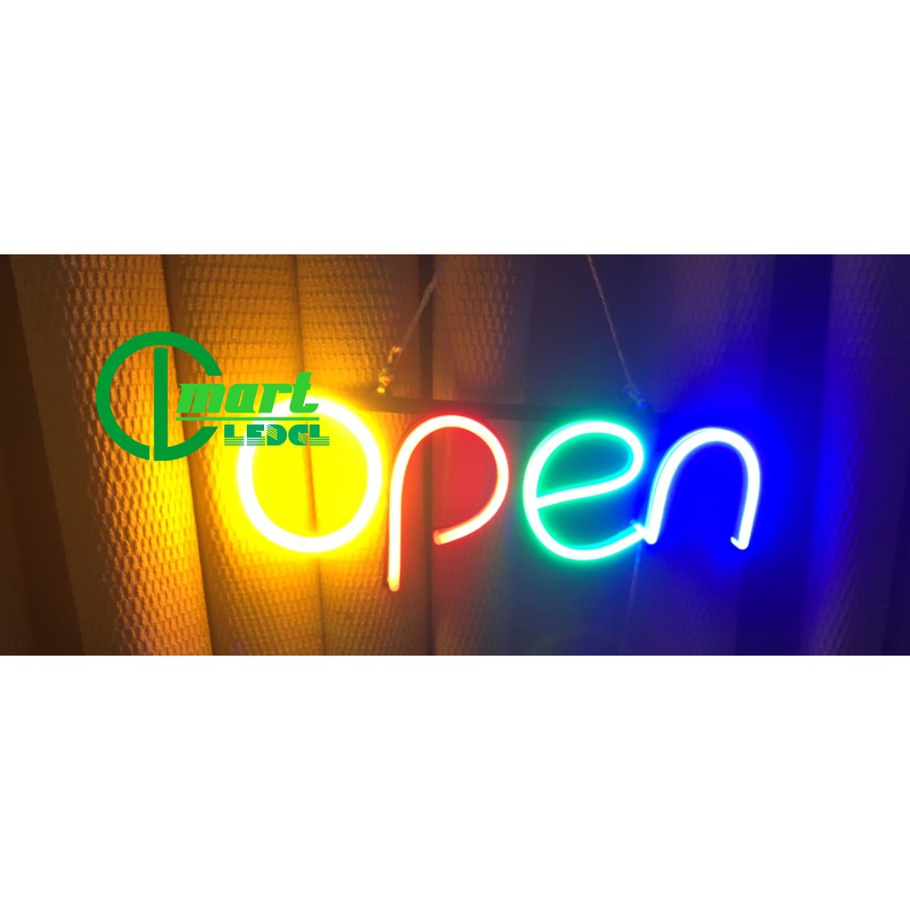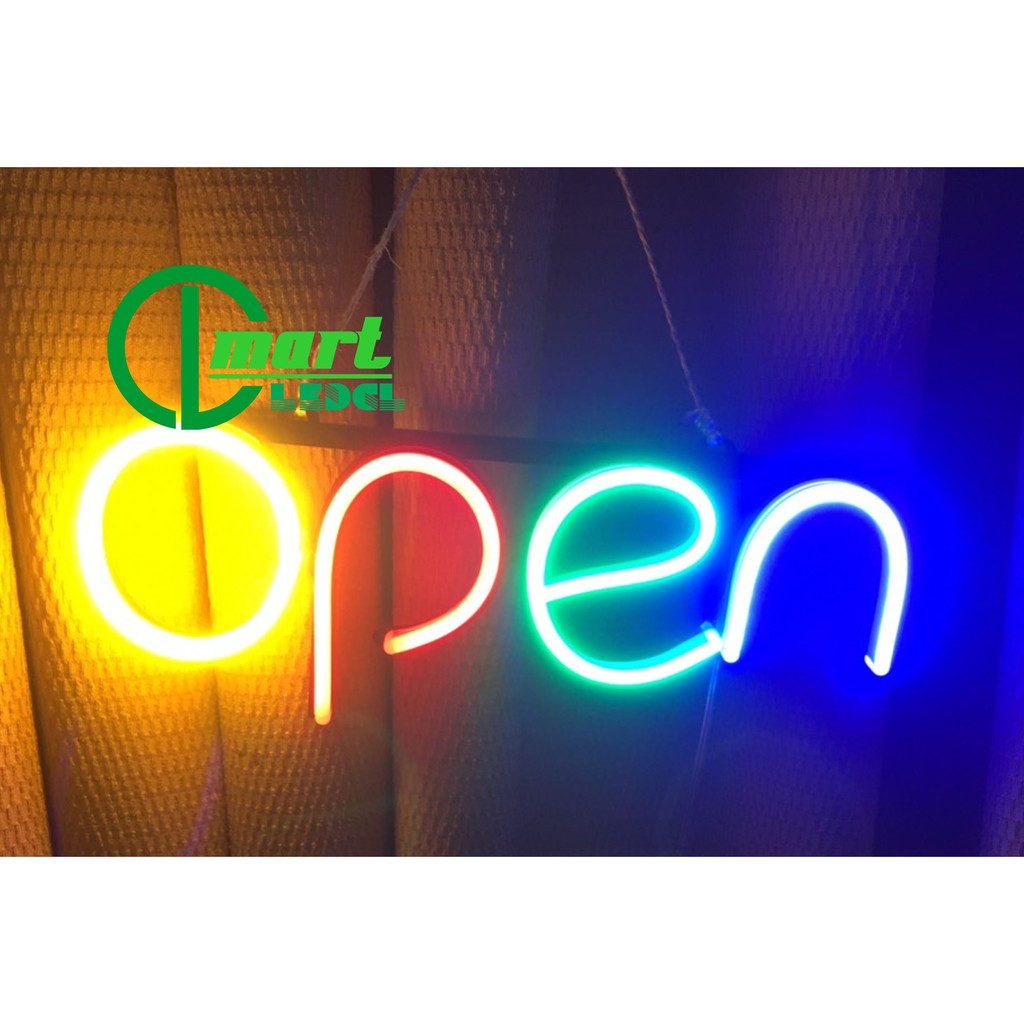 CÓ KÈM NGUỒN 12VBộ sản phẩm chữ neon treo cửa "OPEN" đủ các mày sắc tùy chọn.