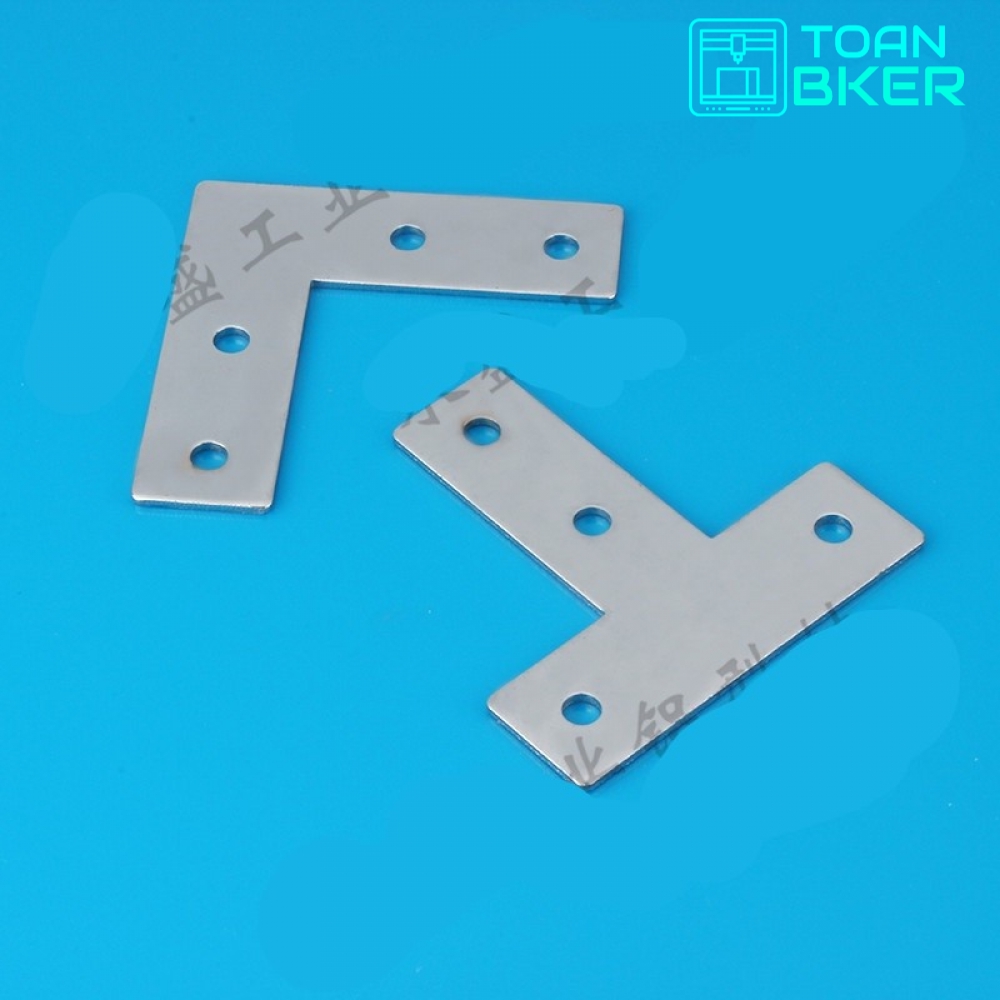 Khi làm khung máy bằng nhôm định hình, chúng ta đều muốn các mối nối vuông góc phải thật chính xác và cứng cáp. Ke vuông có tác dụng tốt với các cơ cấu máy nhỏ, nhưng nếu cơ cấu máy lớn một chút, chúng ta sẽ cần gia cố bằng tấm nối chữ T hoặc chữ L. Khung máy sau khi được gia cố bằng tấm chữ T hoặc chữ L xong thì tăng hẳn độ cứng vững, ổn địnhSản phẩm được làm từ thép, được mạ bóng láng, rất đẹp