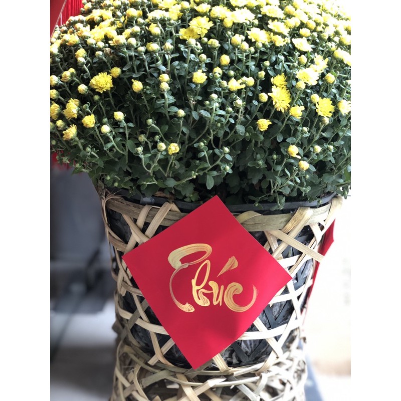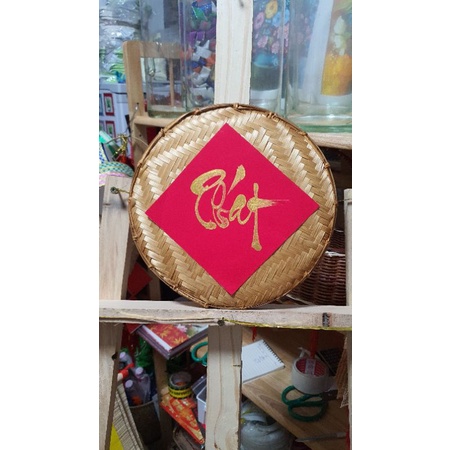 Chữ thư pháp viết tay bằng giấy nhung đỏ cỡ 15cm.Có 2 màu mực đen và mực vàng. Mặt sau có keo dán sẵn rất tiện dụng.