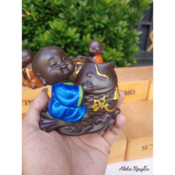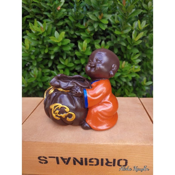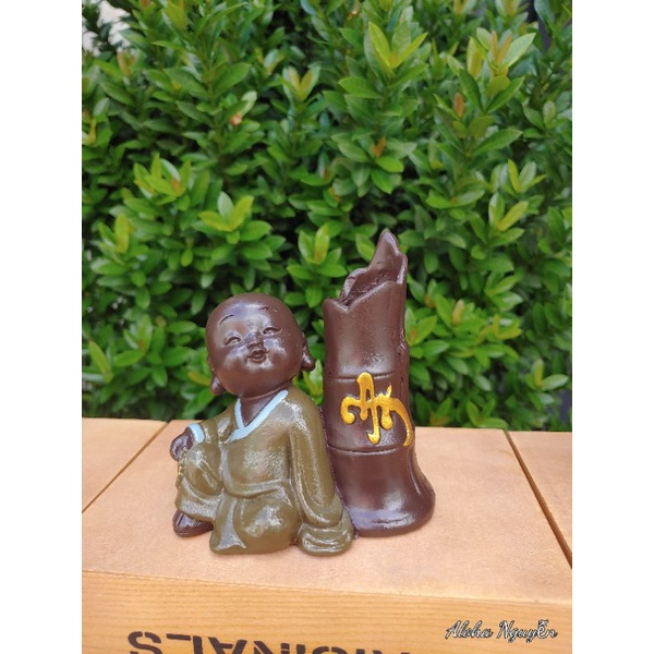 chú tiểu trồng cây màu nâu đen.hàng bao bể .có tặng kèm tiểu cảnh mini.