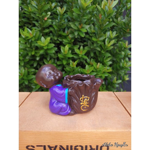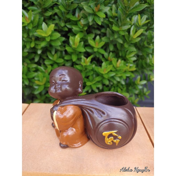 Nhà cửa & Đời sống > Làm vườn > Chậu cây || chú tiểu trồng cây màu nâu đen.hàng bao bể .có tặng kèm tiểu cảnh mini.Còn hàng