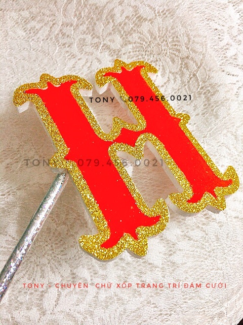 Nhà cửa & Đời sống > Trang trí nhà cửa > Khác || CHỮ XỐP ĐỎ NHUNG VIỀN KIM TUYẾN - kèm keo dán chuyên dụngCòn hàng