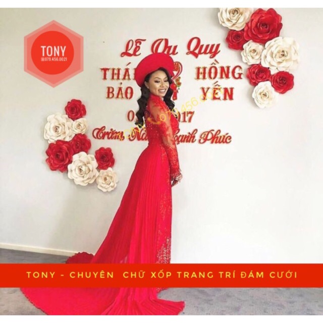 Giới thiệu CHỮ XỐP ĐỎ NHUNG VIỀN KIM TUYẾN - kèm keo dán chuyên dụng