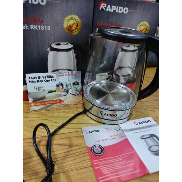 ♻️ Ấm đun Rapido RK1818 công suất 1800W đun sôi nước cực nhanh. Đế tiếp điện cao cấp cho khả năng truyền điện tốt, đảm bảo tuổi thọ của bình.