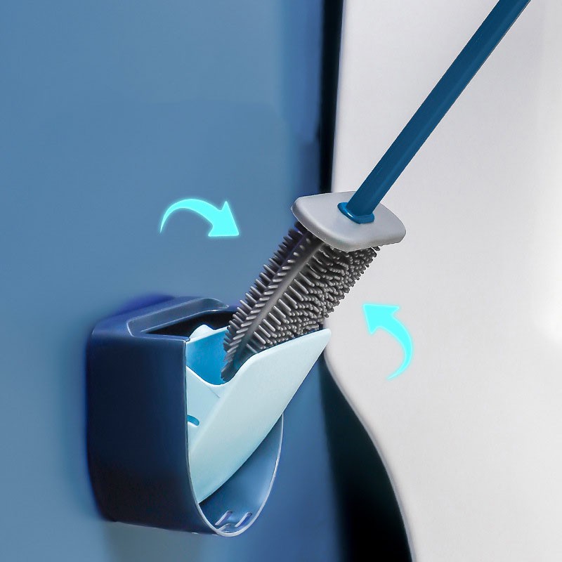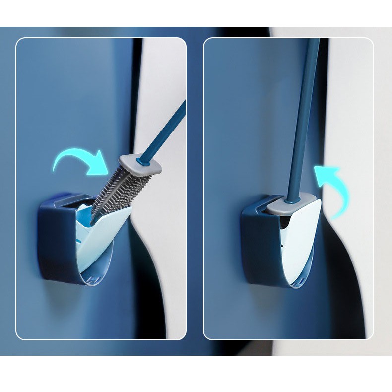 [CHUẨN HÀNG XỊN]Cọ vệ sinh bồn cầu, nhà tắm chất liệu silicon, có hộp đựng dán tường tiện lợi