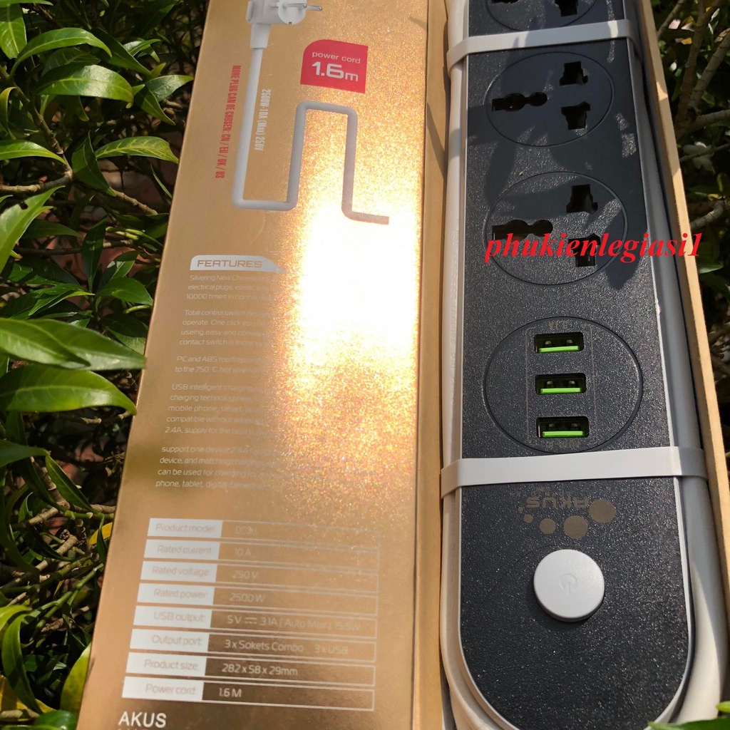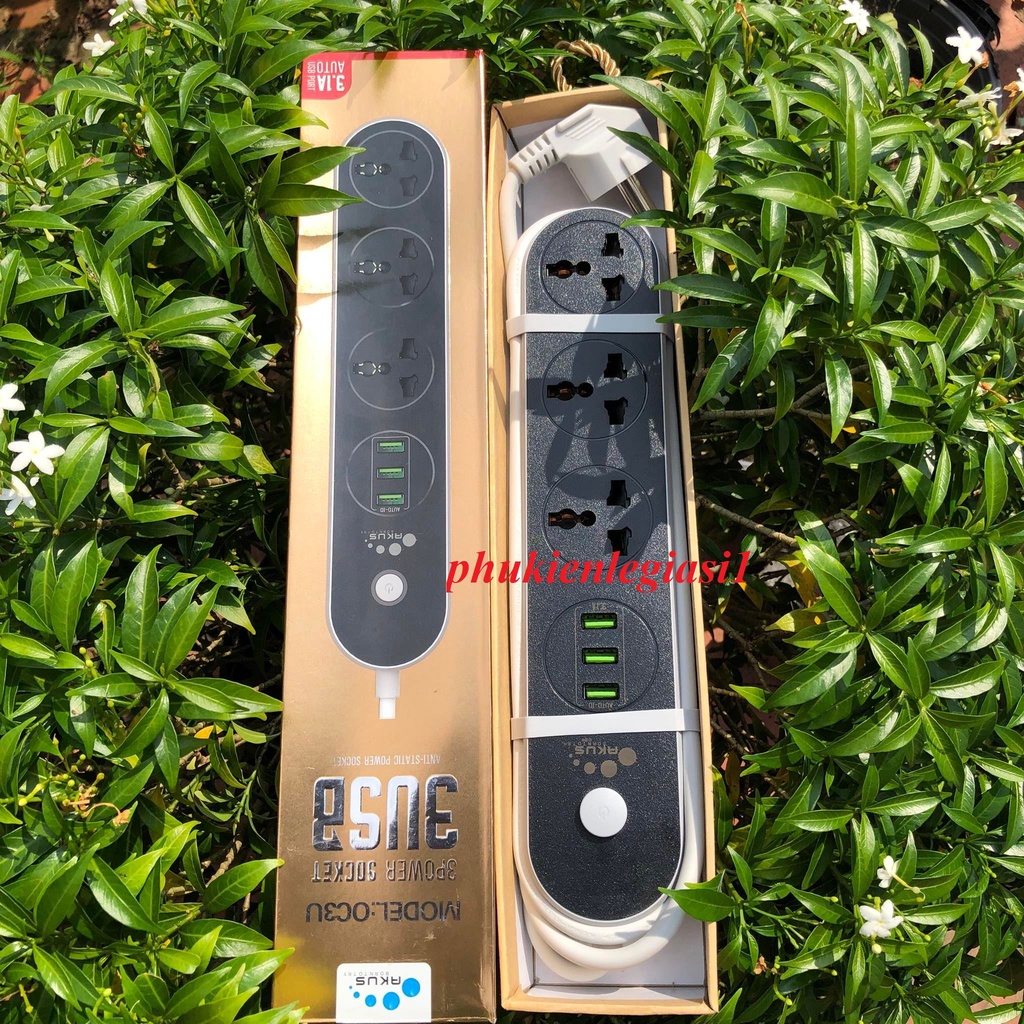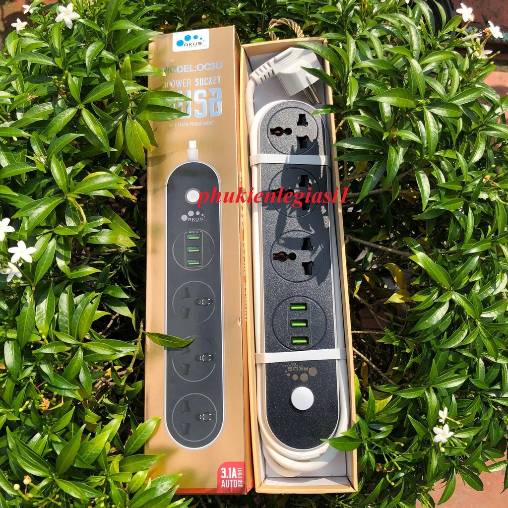 Thiết Bị Điện Gia Dụng > Mạch điện & Phụ tùng > Ổ cắm điện & Dây nối || (Chuẩn hàng)Ổ cắm điện thông minh kèm sạc usb AKUS - OC3UCòn hàng
