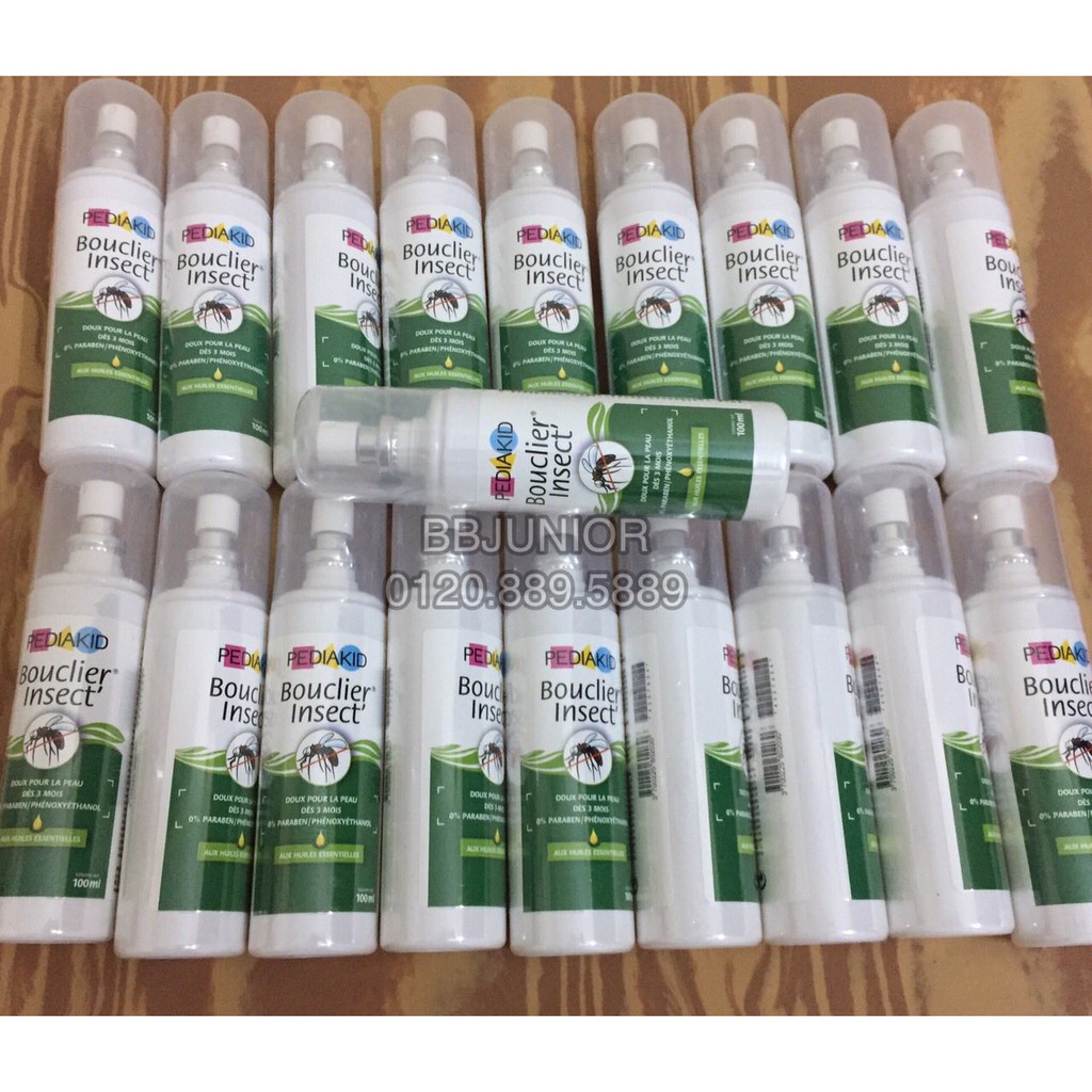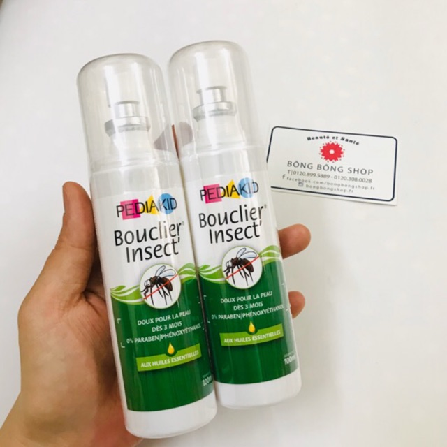 👉Xịt chống muỗi và côn trùng cắn Pediakid dành cho trẻ em (từ 3 tháng tuổi trở lên)Sản phẩm PEDIAKID Bouclier INSECT - xịt chống muỗi và côn trùng cắn được thiết kế đặc biệt dành cho làn da nhạy cảm của trẻ em, với chiết xuất từ hoa oải hương và tinh dầu thiên nhiên cùng hương cam ngọt dịu, có mùi hương dễ chịu, không gây nhờn rít.