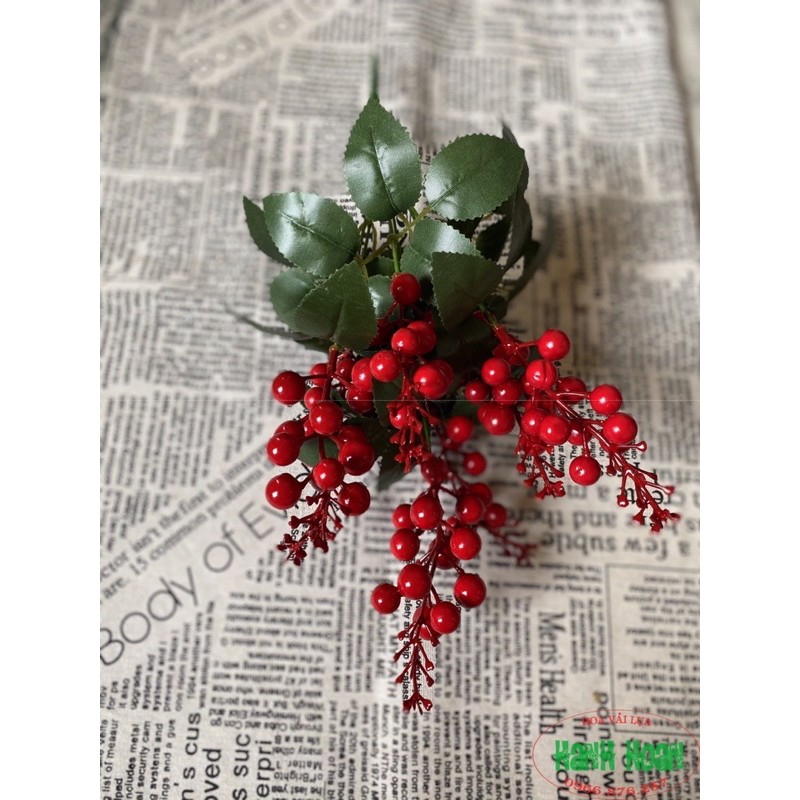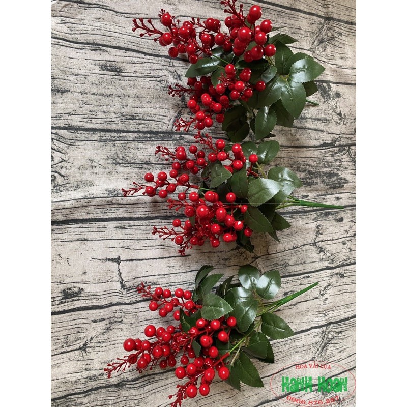 Chùm cherry quả đỏ mọng trang trí sang trọng , điểm hoa, cắm bình- Chất liệu : Quả xốp đỏ to giống thật, loại chùm dài , lá bằng vải và thân bằng nhựa bọc kẽm uốn chỉnh tuỳ ý