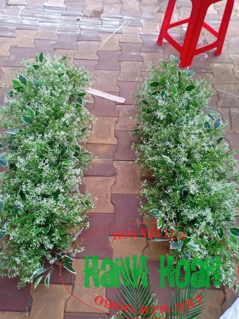 - Chất liệu thân nhựa pvc bọc kẽm, hoa nhựa điểm hạt trắng bền đẹp