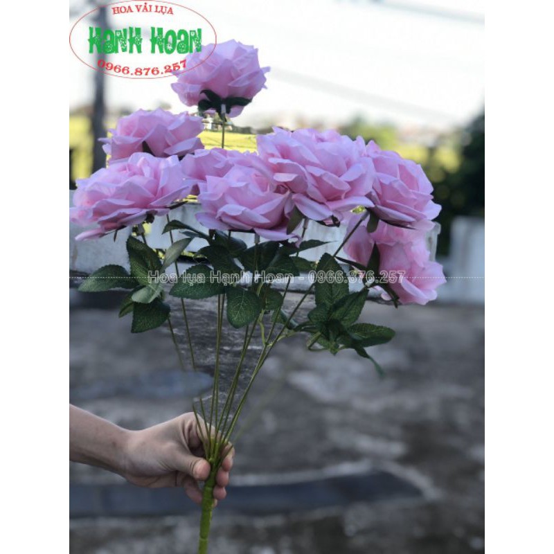 Chùm hoa hồng cánh xoăn 9 bông size lớn - Hoa giả,hoa lụa cao cấp